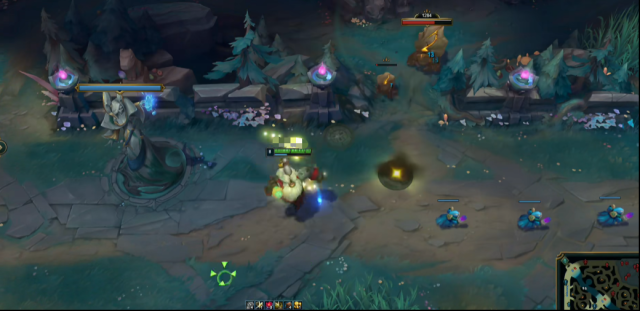 被動(dòng)效果“旅者的召喚”,巴德在場時(shí)會(huì)有調(diào)和之音出現(xiàn),這些調(diào)和之音會(huì)給他帶來經(jīng)驗(yàn)值,12%的法力值外加24%的移速加成,在獲得一個(gè)層數(shù)之后,每一個(gè)額外的調(diào)和之音都能給他再額外提供14%的移速,最多5層;小型靈體會(huì)協(xié)同他攻擊,造成額外40的魔法傷害,木靈會(huì)不斷獲取能量,提升后續(xù)傷害。