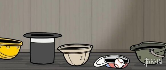 4、然后再開一槍,將棒球放在右數(shù)第二個(gè)棒球帽里。