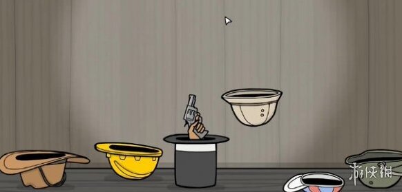 3、朝著天花板的不同角度開槍會(huì)掉出來五頂帽子。