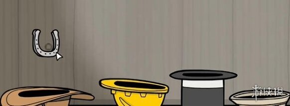 8、馬蹄鐵放到左邊的牛仔帽中。