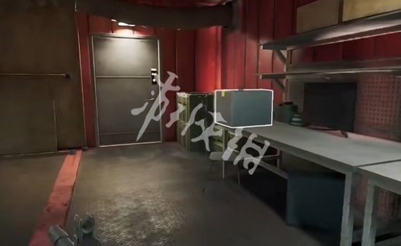 通過主樓入口進入組裝室,隨后上樓至二樓可見密碼門