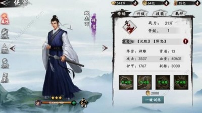 擁有不錯的俠客之后,我們就可以根據俠客的屬性組建自己的初始陣容。游戲分為掌、劍、力、氣、技五中職業,前期陣容以平衡為主,最好每個職業的俠客都能有一位在陣容中。組建好陣容后,我們就可以對俠客進行強化了。點擊屏幕下方的俠客按鍵,進入俠客選擇界面,選擇我們要強化的俠客進入強化界面。