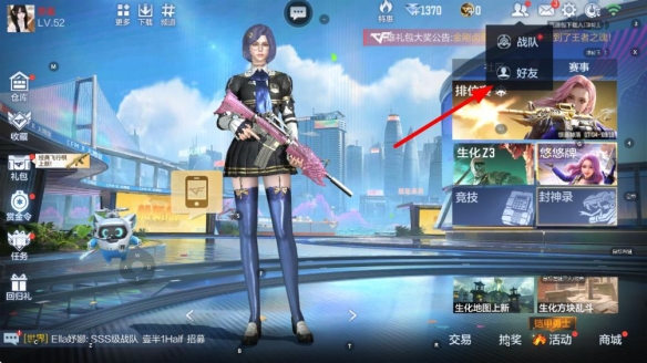 2、點擊后看到左側的導航欄,顯示戰隊和好友分類,選擇好友的選項。