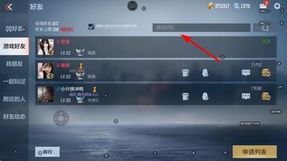 3、在好友界面的查找好友搜索框中,輸入對方的游戲昵稱或賬號,搜索找到想添加的好友后,點擊其名字旁邊對應的添加好友按鈕等待對方同意即可。